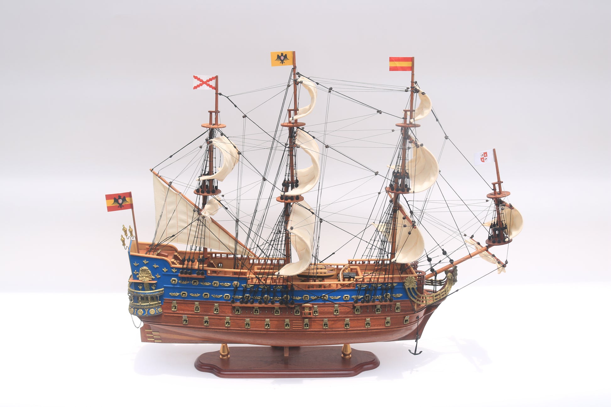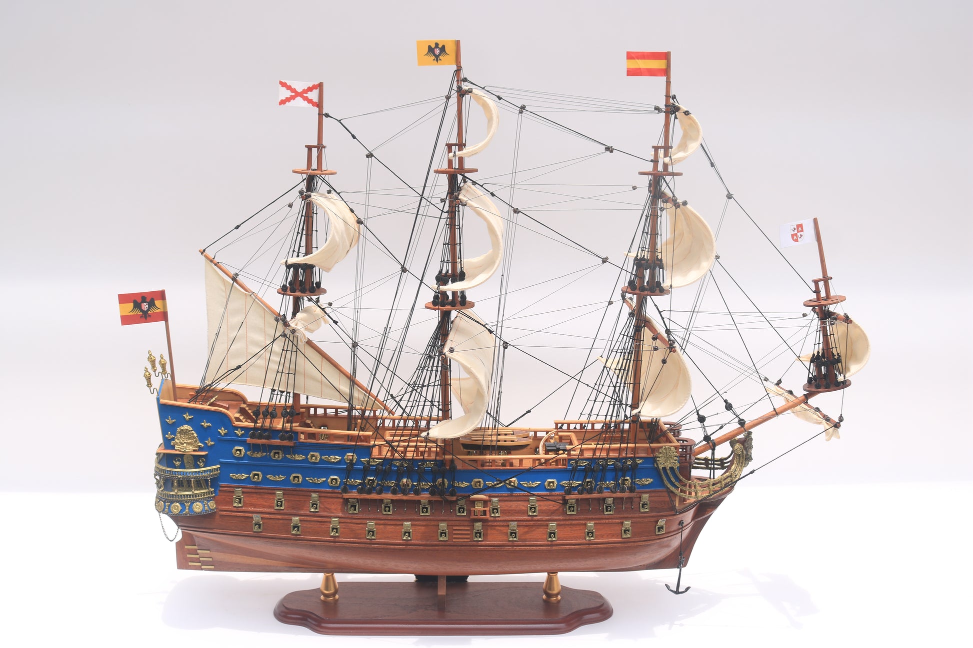 Erleben Sie die Pracht & Macht der San Felipe eines der beeindruckendsten Linienschiffe des 17-18. Jahrhunderts. Diese handgefertigten Modelle wurden mit höchster Präzision gestaltet, um die majestic Präsenz & kunstvollen Details dieses historischen Flaggschiffs originalgetreu widerzuspiegeln.